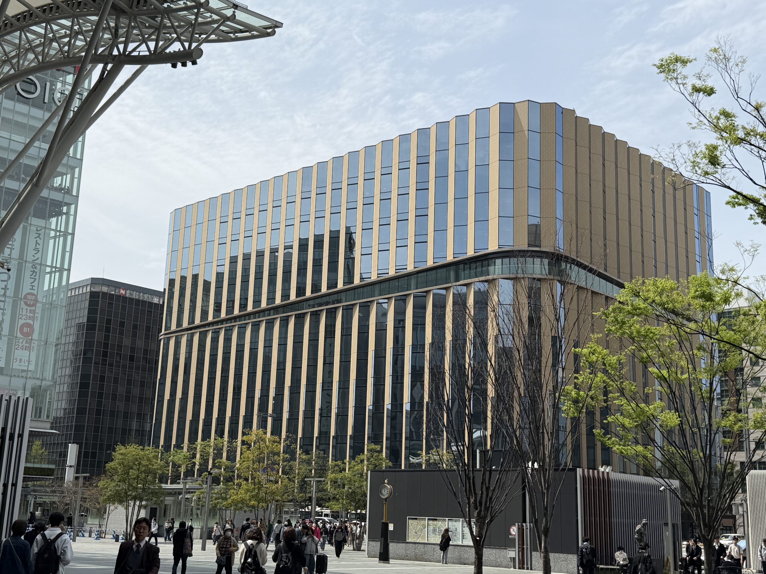 走出博多站博多口,映入眼簾的是一棟金色×玻璃帷幕、外觀華美的全新大樓——西日本城市銀行新總行。